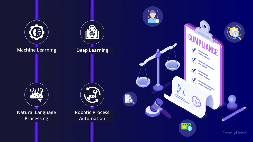 AI technologies such as machine learning, natural language processing, and predictive analytics are instrumental in financial regulatory compliance. These technologies enable institutions to analyze large volumes of data, detect patterns, and make predictions that support compliance efforts.